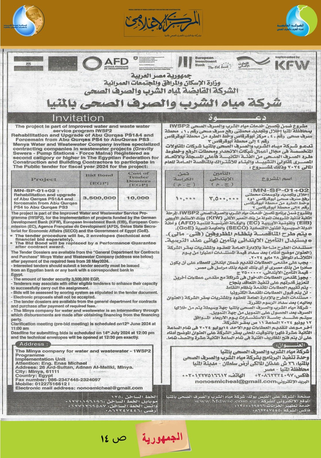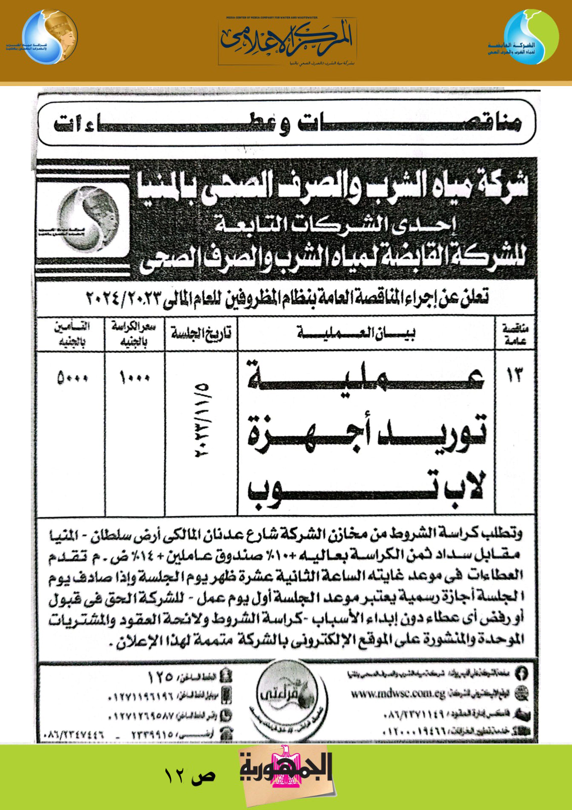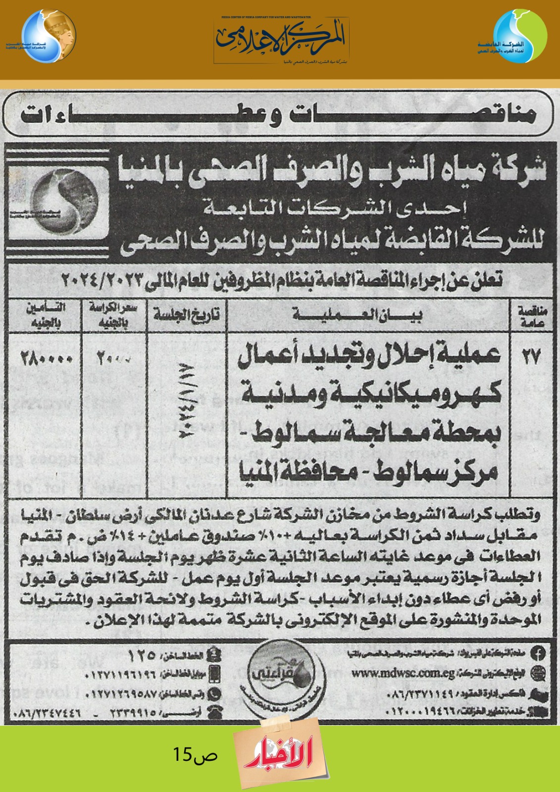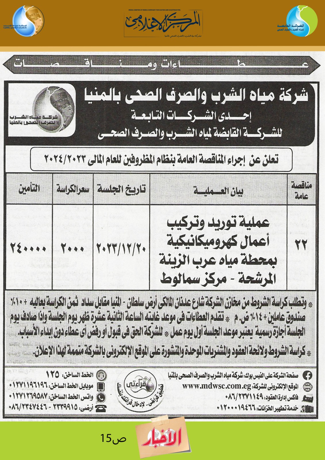 مناقصة بنظام المظروفين للعام المالى 2023 - 2024