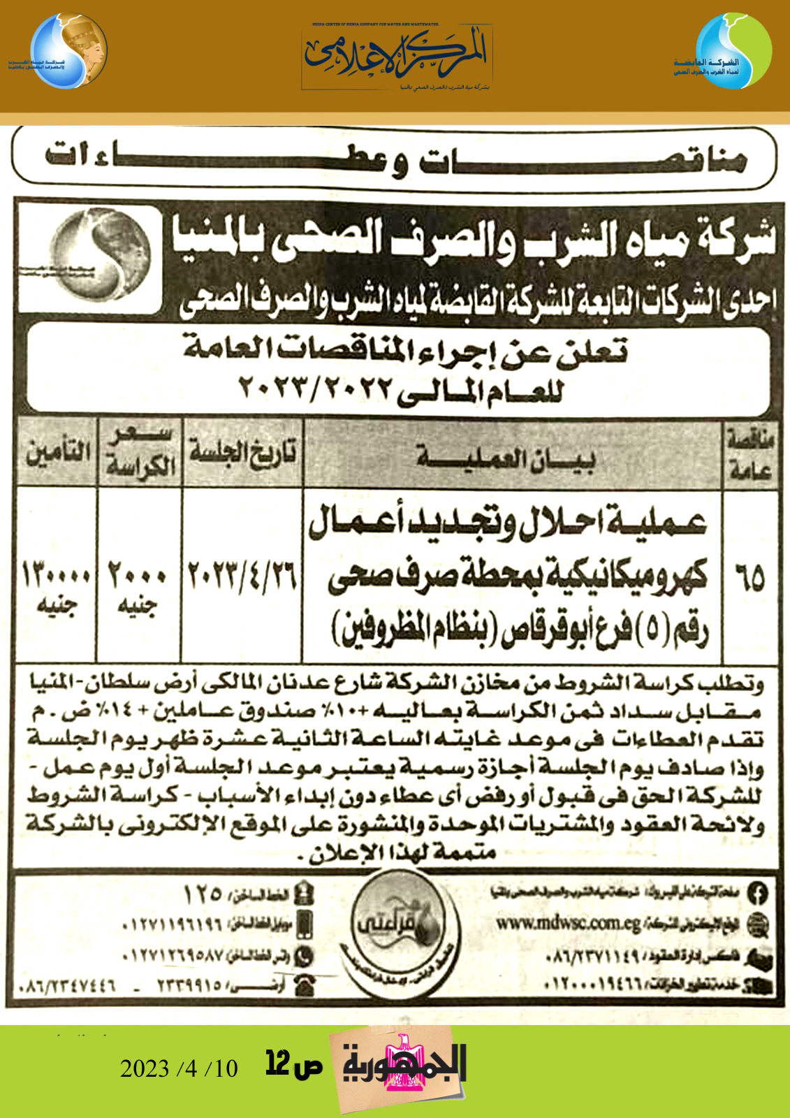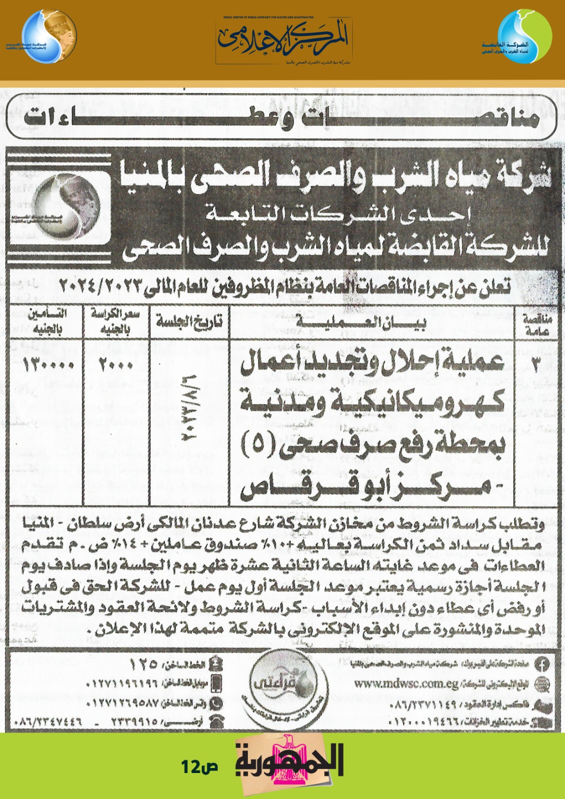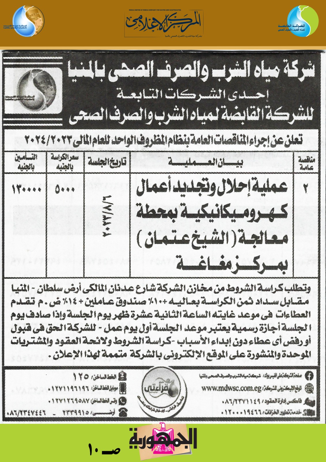 عملية احلال وتجديد اعمال كهروميكانيكية بمحطة معالجة الشيخ عثمان بمركز مغاغه
