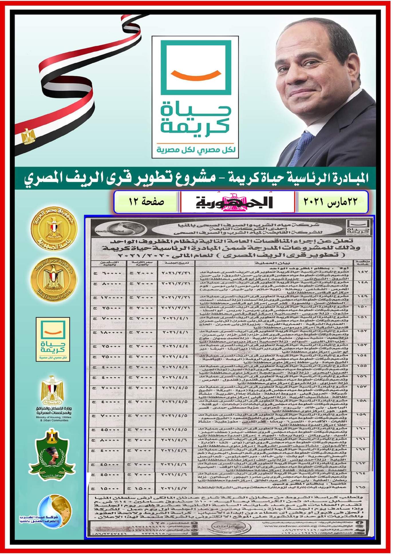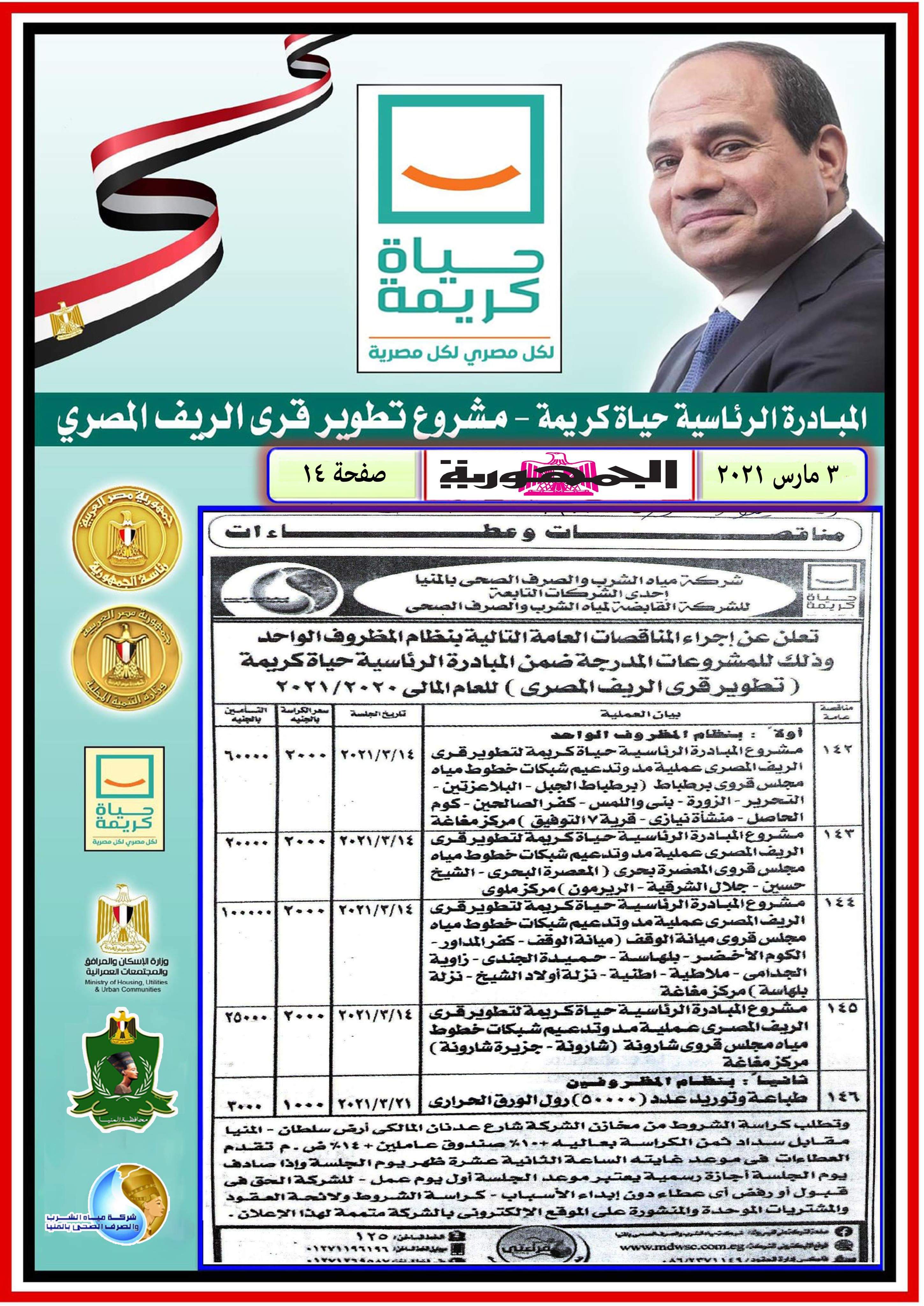 مناقصة خاصة بحياة كريمة الإثنين ٢٠٢١/٣/٢٢