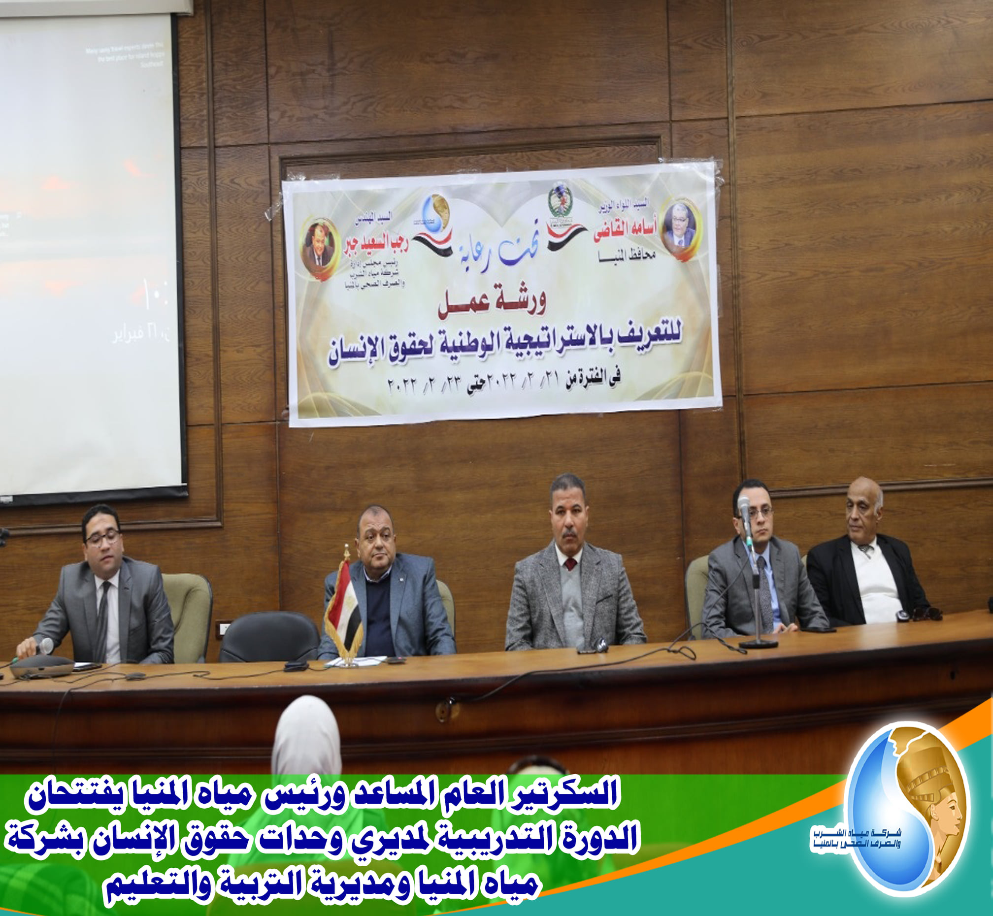 السكرتير العام المساعد ورئيس مياه المنيا يفتتحان الدورة التدريبية لمديري وحدات حقوق الإنسان بشركة مياه المنيا ومديرية التربية والتعليم