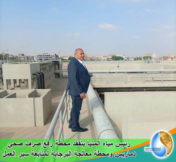 رئيس مياه المنيا يتفقد محطة رفع صرف صحي دماريس ومحطة معالجة البرجاية لمتابعة سير العمل
