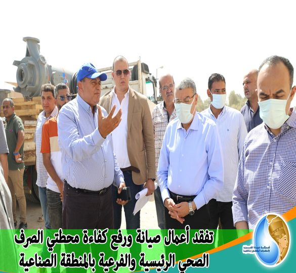 رئيس مياه المنيا يرافق السيد المحافظ لتفقد أعمال صيانة ورفع كفاءة محطتي الصرف الصحي الرئيسية والفرعية بالمنطقة الصناعية.