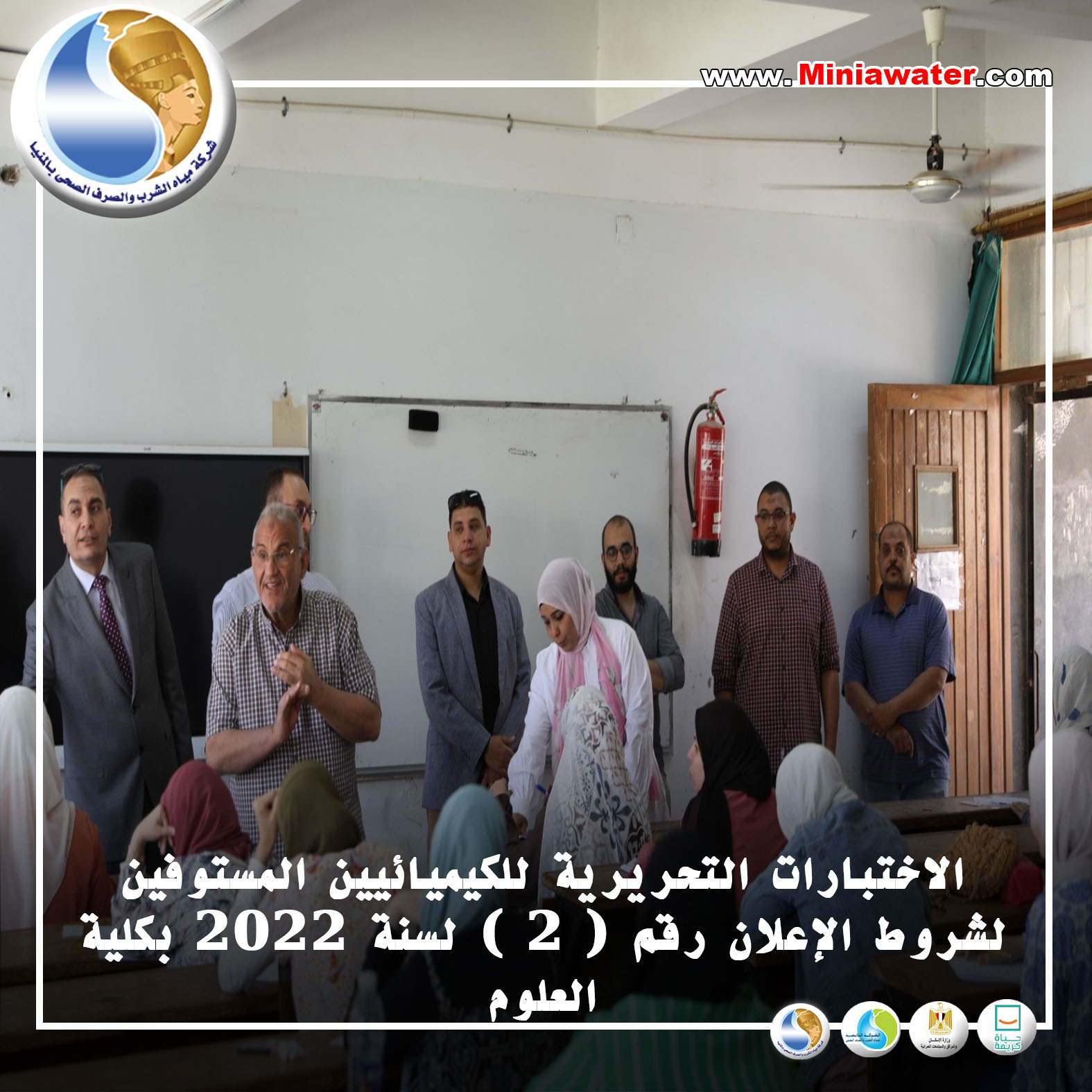 مياه المنيا : الاختبارات التحريرية للكيميائين المستوفين لشروط الإعلان رقم ( ٢ ) لسنة ٢٠٢٢ بكلية العلوم.