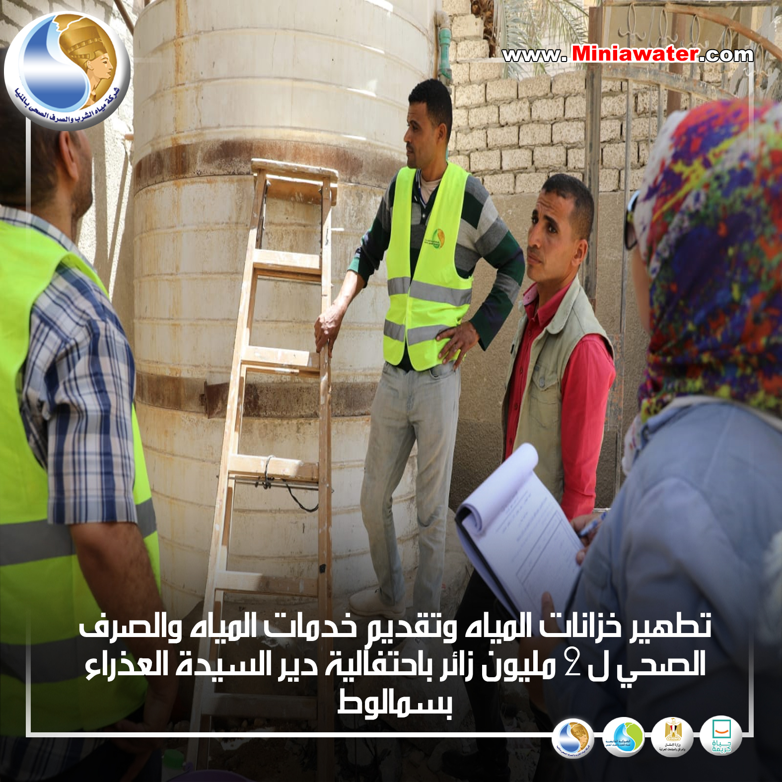مياه المنيا : تطهير خزانات المياه وتقديم خدمات المياه والصرف الصحي ل 2 مليون زائر باحتفالية دير السيدة العذراء بسمالوط