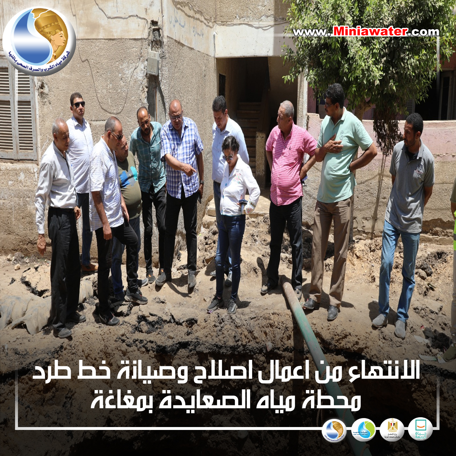 مياه المنيا : الانتهاء من اعمال اصلاح وصيانة خط طرد محطة مياه الصعايدة بمغاغة