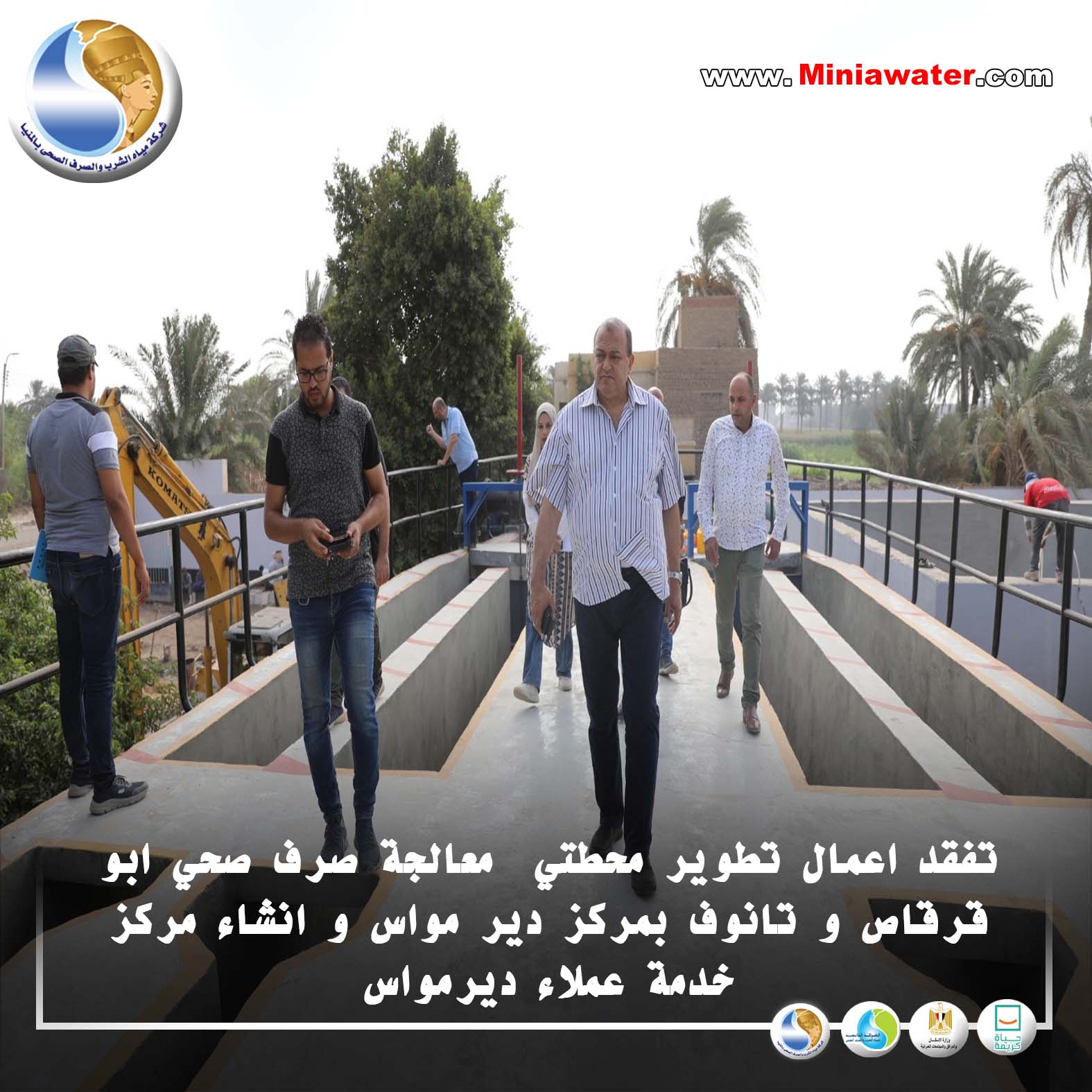 رئيس مياه المنيا يتفقد اعمال تطوير محطتي معالجة صرف صحي ابو قرقاص و تانوف بمركز دير مواس و انشاء مركز خدمة عملاء ديرمواس .