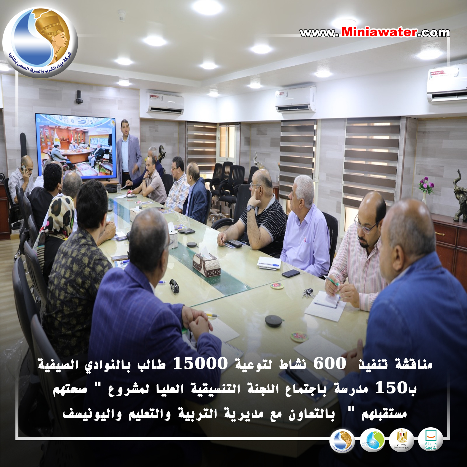 مياه المنيا : مناقشة تنفيذ ٦٠٠ نشاط لتوعية ١٥٠٠٠ طالب بالنوادي الصيفية ب١٥٠ مدرسة باجتماع اللجنة التنسيقية العليا لمشروع " صحتهم مستقبلهم " بالتعاون مع مديرية التربية والتعليم واليونيسف
