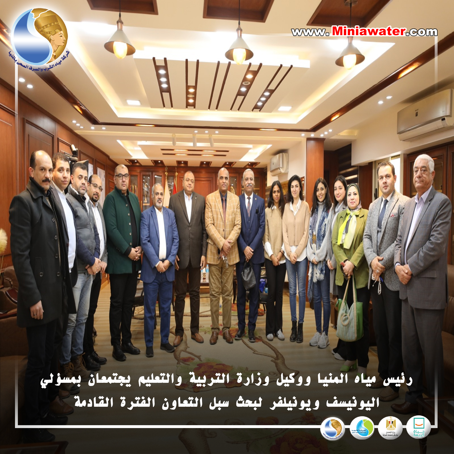 رئيس مياه المنيا ووكيل وزارة التربية والتعليم يجتمعان بمسؤلي اليونيسف ويونيلفر لبحث سبل التعاون الفترة القادمة.