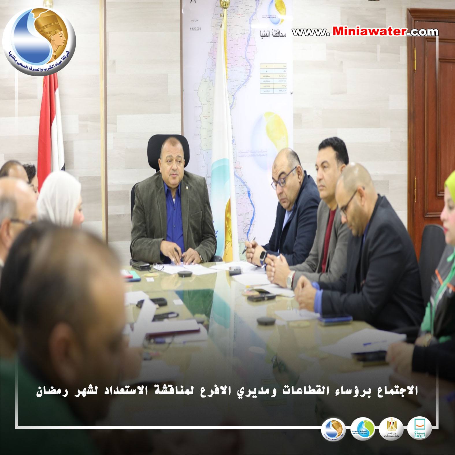 رئيس مياه المنيا يجتمع برؤساء القطاعات ومديري الافرع لمناقشة الاستعداد لشهر رمضان.