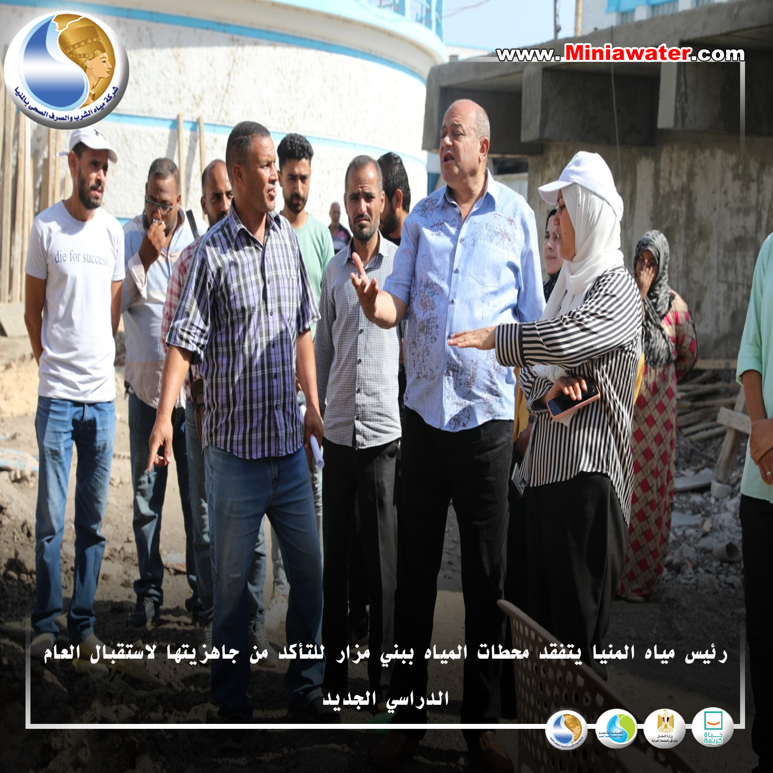 رئيس مياه المنيا يتفقد محطات المياه ببني مزار للتأكد من جاهزيتها لاستقبال العام الدراسي الجديد.