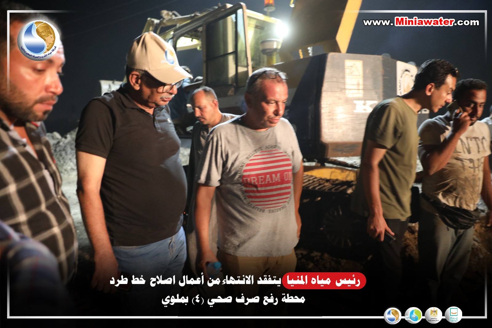 رئيس مياه المنيا يتفقد الانتهاء من أعمال اصلاح خط طرد محطة رفع صرف صحي (٤) بملوي