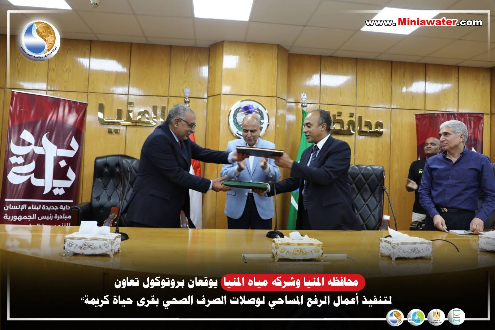 محافظه المنيا وشركه مياه المنيا يوقعان بروتوكول تعاون لتنفيذ أعمال الرفع المساحي لوصلات الصرف الصحي بقرى «حياة كريمة»