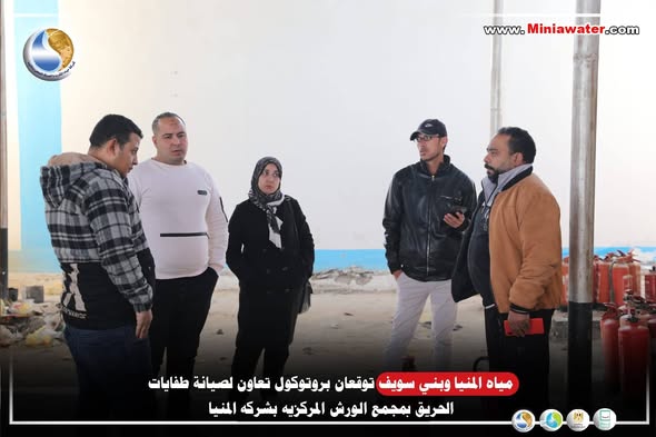 مياه المنيا وبني سويف توقعان بروتوكول تعاون لصيانة طفايات الحريق بمجمع الورش المركزيه بشركه المنيا