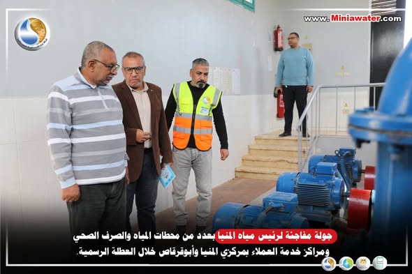 جولة مفاجئة لرئيس مياه المنيا بعدد من محطات المياه والصرف الصحي ومراكز خدمة العملاء بمركزي المنيا وأبوقرقاص خلال العطلة الرسمية.