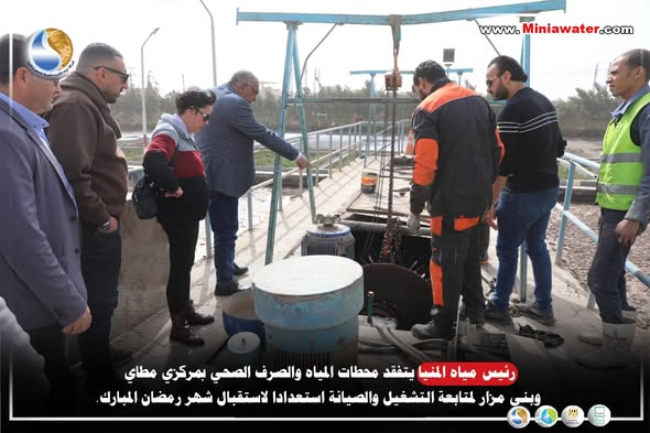 رئيس مياه المنيا يتفقد محطات المياه والصرف الصحي بمركزي مطاي وبني مزار لمتابعة التشغيل والصيانة استعدادا لاستقبال شهر رمضان المبارك.