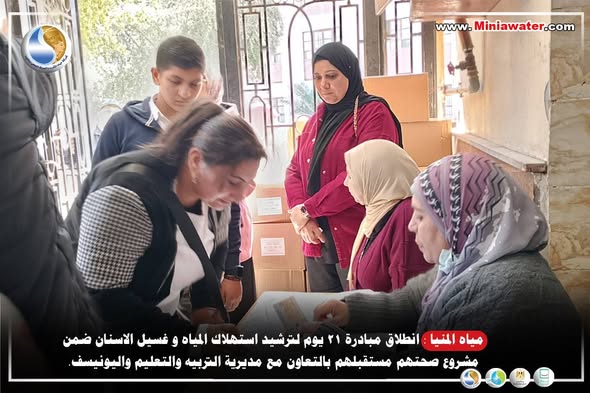 *مياه المنيا : انطلاق مبادرة ٢١ يوم لترشيد استهلاك المياه و غسيل الاسنان ضمن مشروع صحتهم مستقبلهم بالتعاون مع مديرية التربيه والتعليم واليونيسف.*