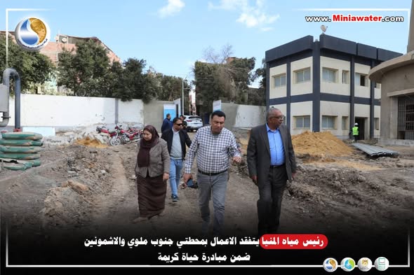 رئيس مياه المنيا يتفقد الاعمال بمحطتي جنوب ملوي والاشمونين ضمن مبادرة حياة كريمة
