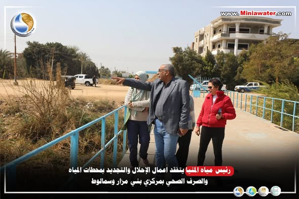رئيس مياه المنيا يتفقد اعمال الإحلال والتجديد بمحطات المياه والصرف الصحي بمركزي بني مزار وسمالوط