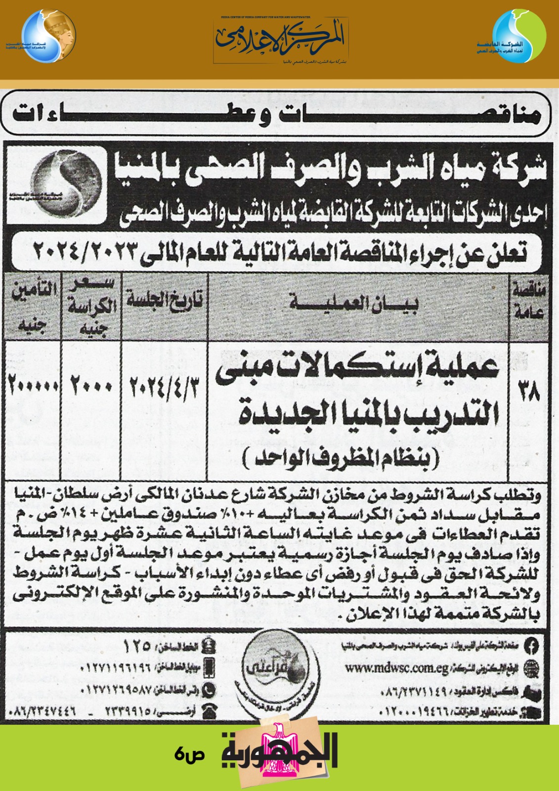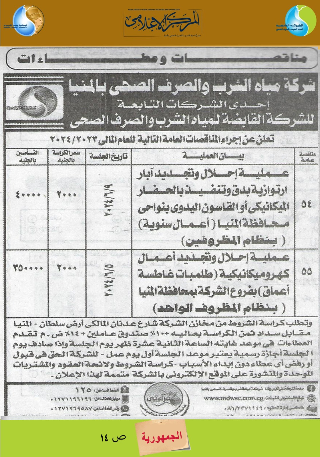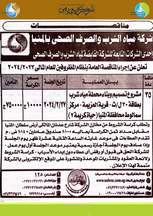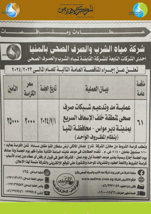 مناقصة بنظام المظروفين للعام المالى 2023 - 2024