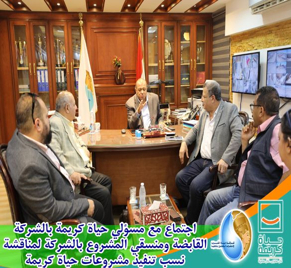 رئيس مياه المنيا يجتمع مع مسؤلي حياة كريمة بالشركة القابضة ومنسقي المشروع بالشركة لمناقشة نسب تنفيذ مشروعات حياة كريمة