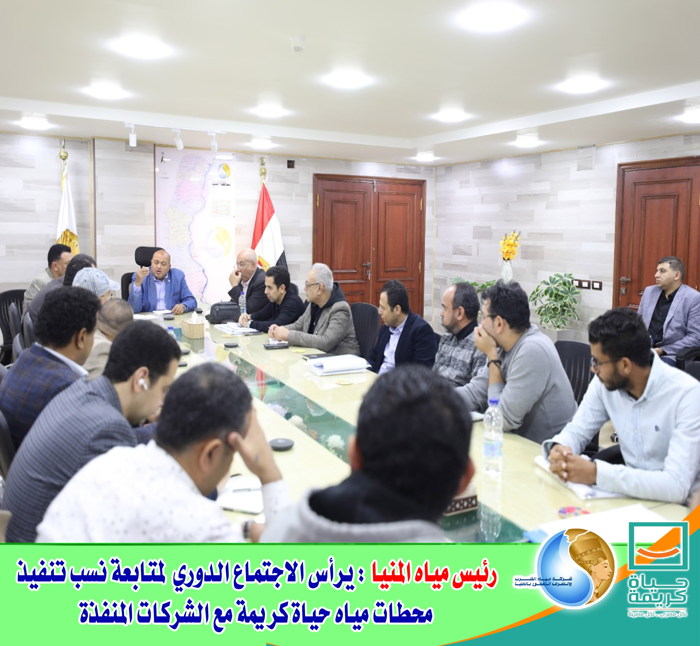 رئيس مياه المنيا يرأس الاجتماع الدوري لمتابعة نسب تنفيذ محطات مياه حياة كريمة مع الشركات المنفذة