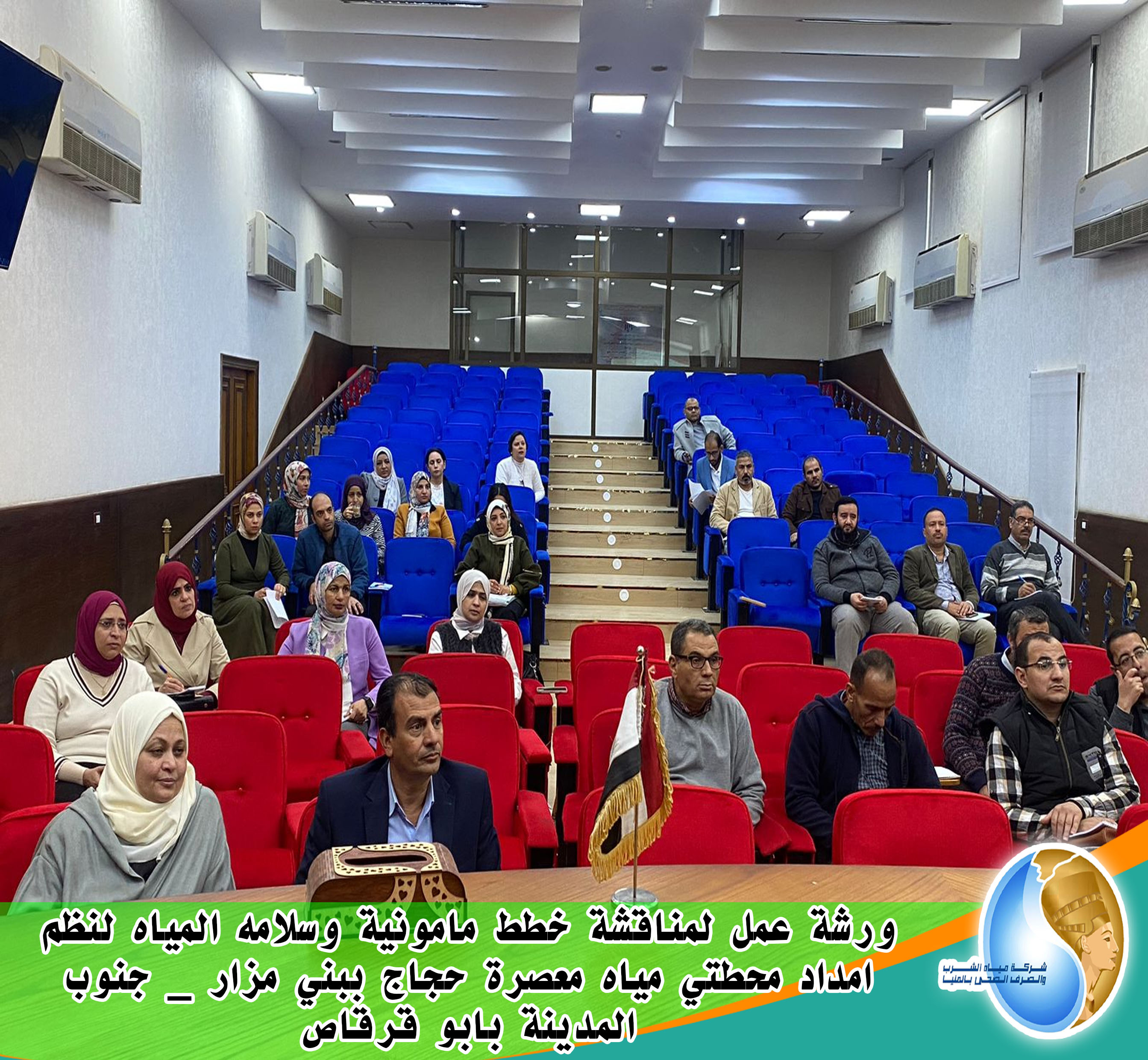 مياه المنيا : ورشة عمل لمناقشة خطط مامونية وسلامه المياه لنظم امداد محطتي مياه معصرة حجاج ببني مزار _ جنوب المدينة بابو قرقاص