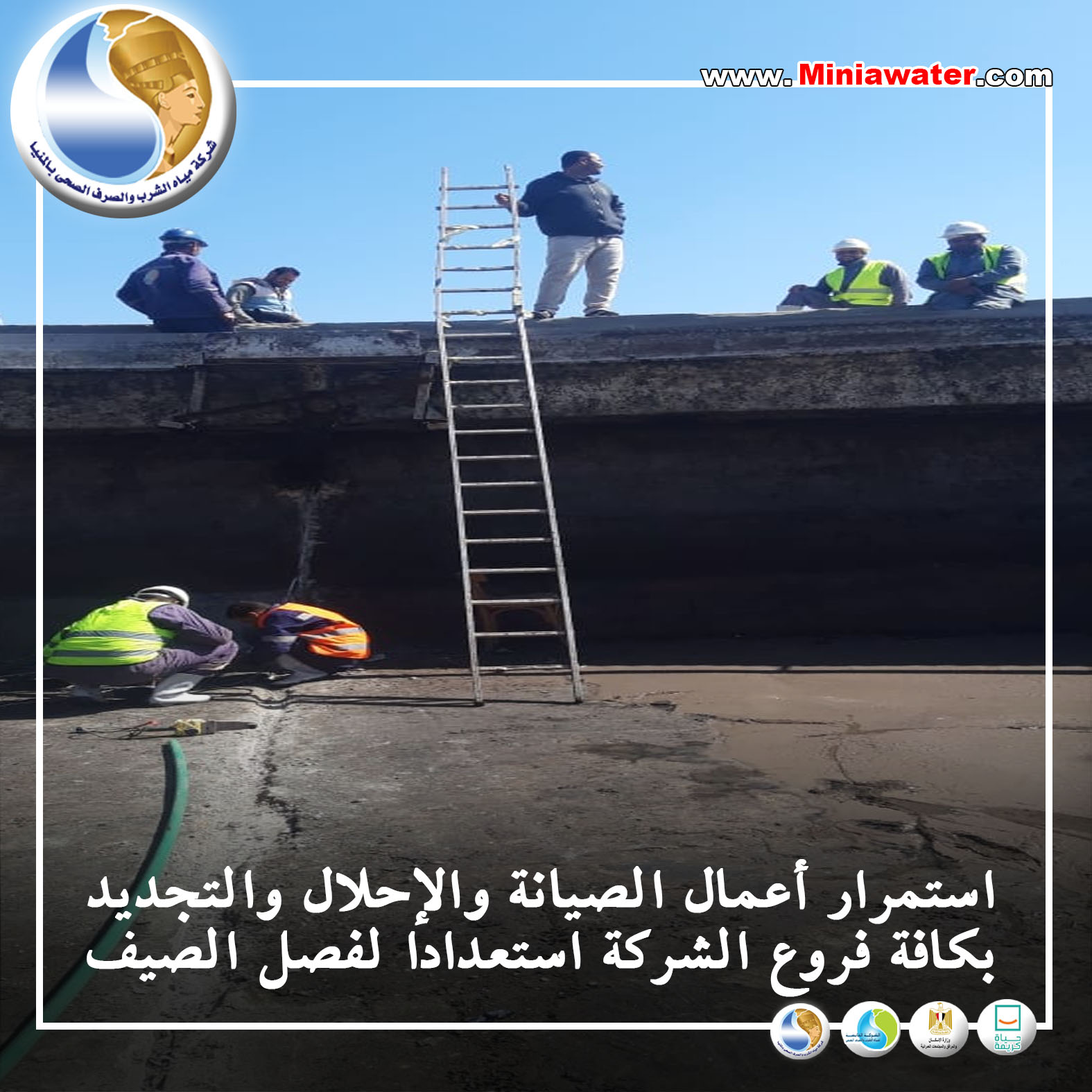 مياه المنيا : استمرار أعمال الصيانة والإحلال والتجديد بكافة فروع الشركة استعدادا لفصل الصيف.