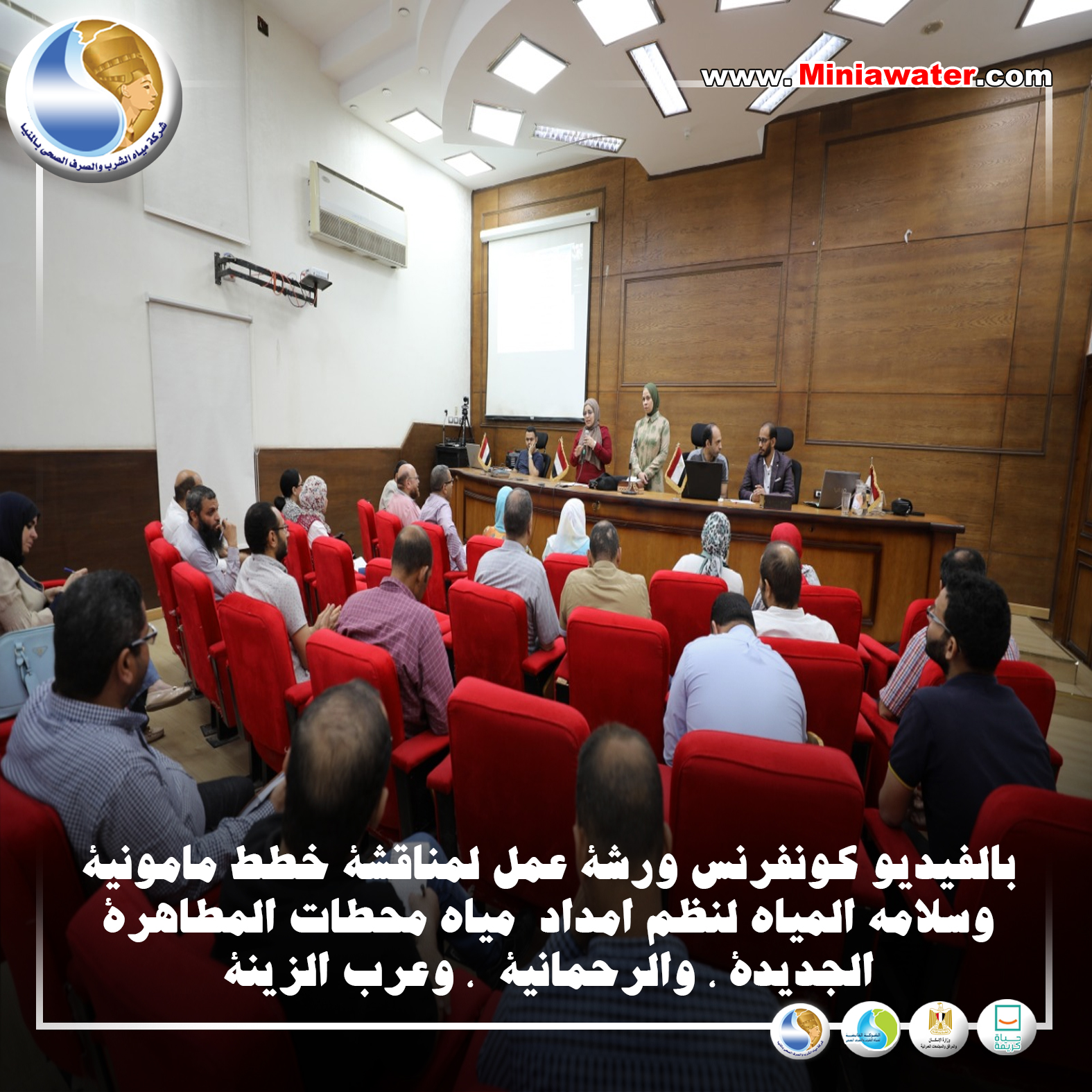 بالفيديو كونفرنس : ورشة عمل لمناقشة خطط مامونية وسلامه المياه لنظم امداد مياه محطات المطاهرة الجديدة ، والرحمانية ، وعرب الزينة .