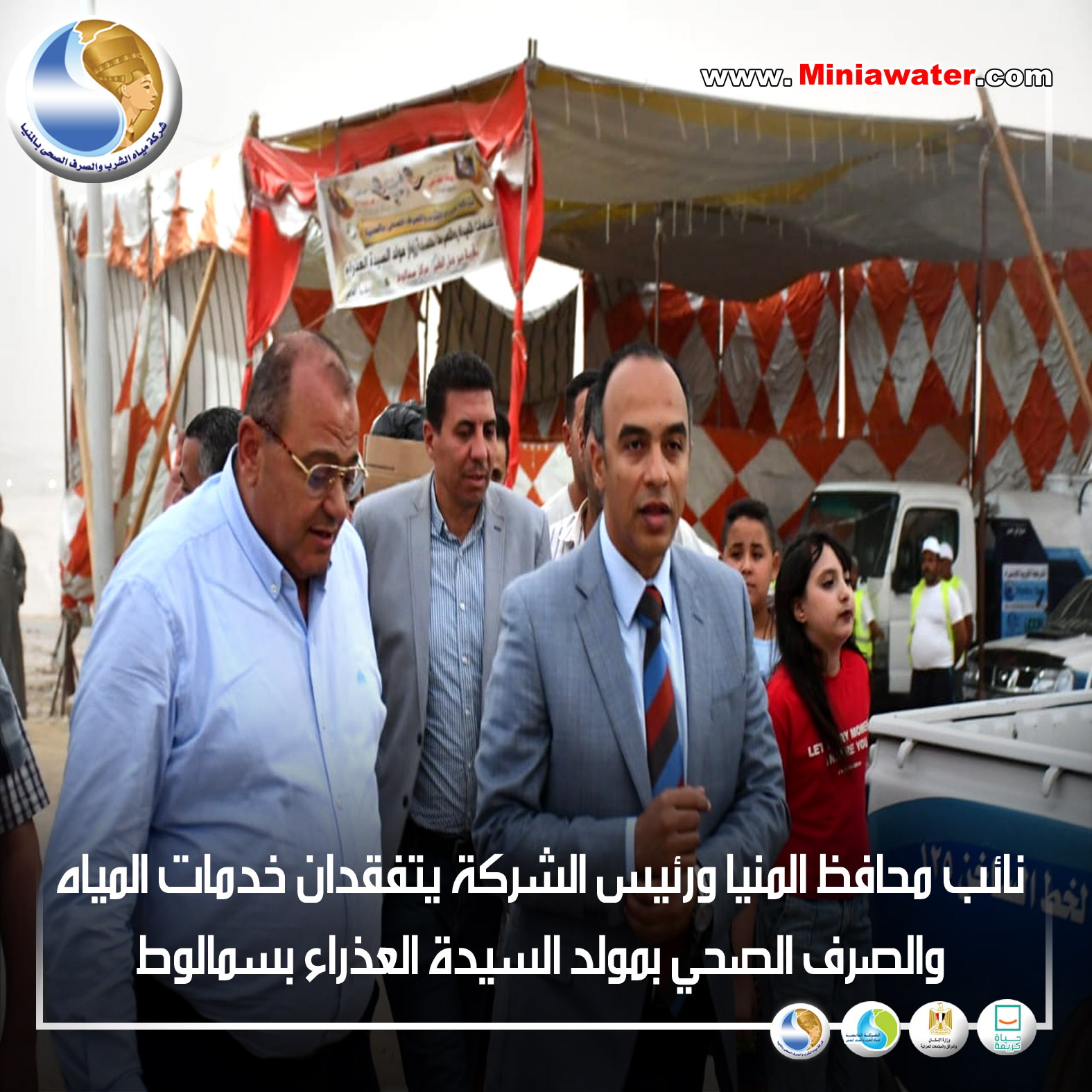 نائب محافظ المنيا ورئيس الشركة يتفقدان خدمات المياه والصرف الصحي بمولد السيدة العذراء بسمالوط