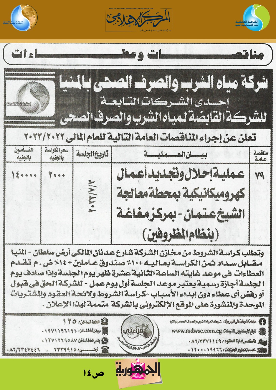 2023-06-15 11:13:32جميع الحقوق محفوظة لشركة مياه الشرب والصرف الصحى بالمنيا
