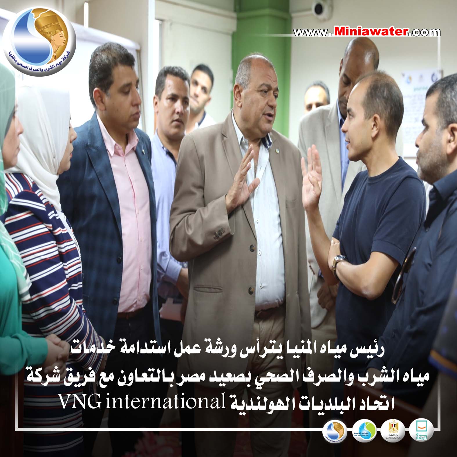 رئيس مياه المنيا يترأس ورشة عمل استدامة خدمات مياه الشرب والصرف الصحي بصعيد مصر بالتعاون مع فريق شركة اتحاد البلديات الهولندية VNG international