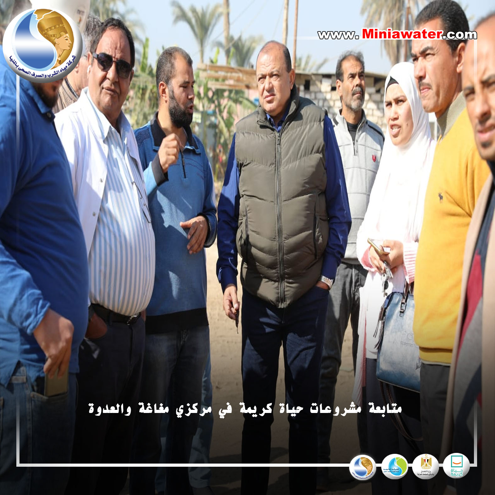 رئيس « مياه المنيا» يتابع مشروعات حياة كريمة في مركزي مغاغة والعدوة