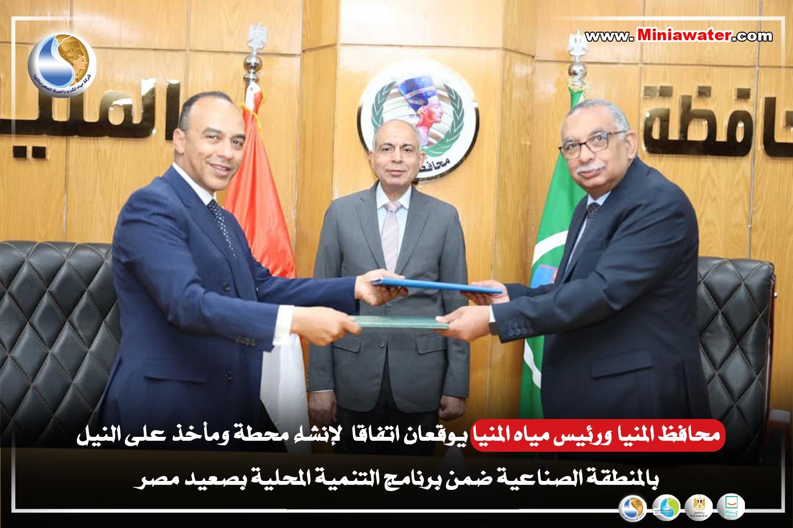 محافظ المنيا ورئيس مياه المنيا يوقعان اتفاقا لإنشاء محطة ومأخذ على النيل بالمنطقة الصناعية ضمن برنامج "التنمية المحلية بصعيد مصر"