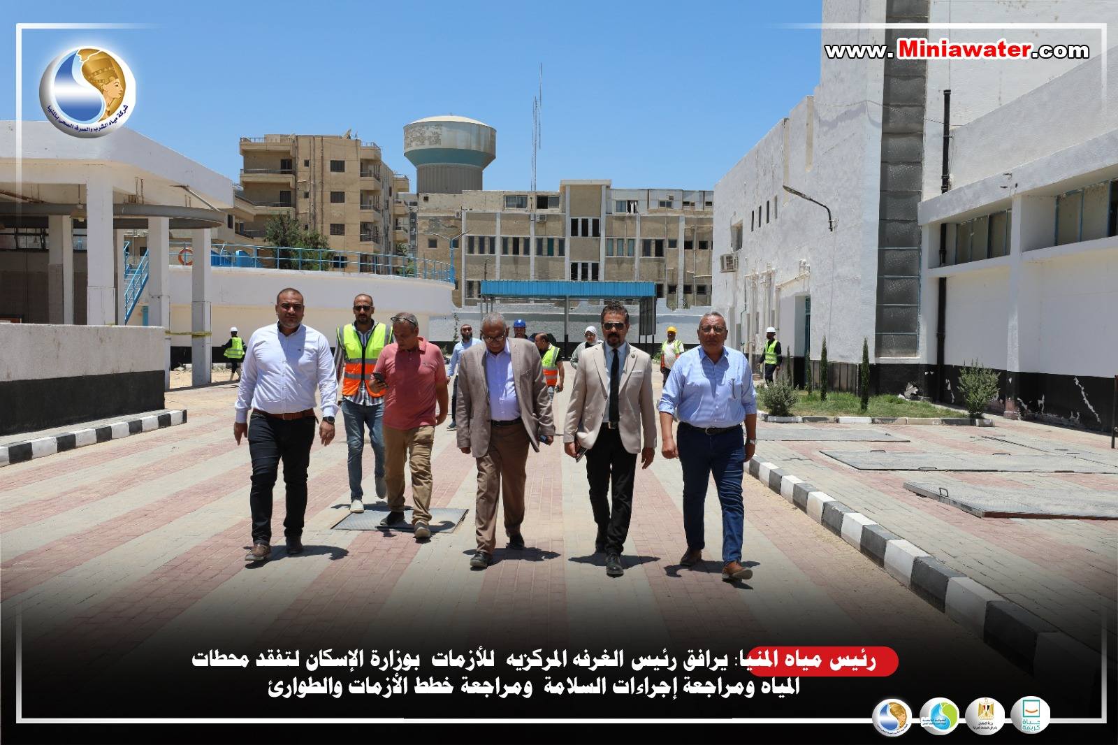 رئيس مياه المنيا: يرافق رئيس الغرفه المركزيه للأزمات بوزارة الإسكان لتفقد محطات المياه ومراجعة إجراءات السلامة ومراجعة خطط الأزمات والطوارئ