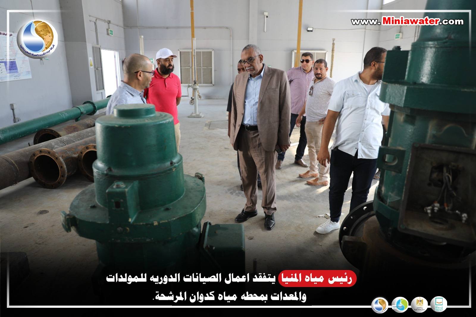 رئيس مياه المنيا يتفقد اعمال الصيانات الدوريه للمولدات والمعدات بمحطه مياه كدوان المرشحة.