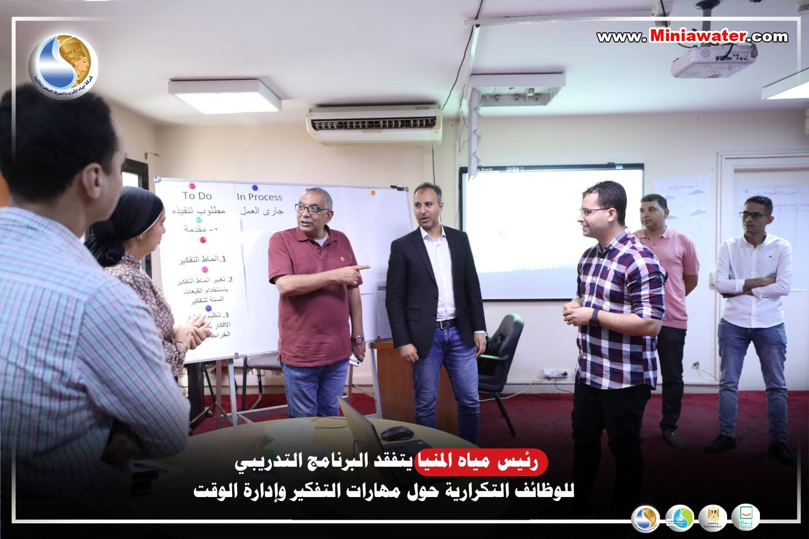 رئيس مياه المنيا يتفقد البرنامج التدريبي للوظائف التكرارية حول مهارات التفكير وإدارة الوقت