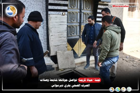 لجنة «حياة كريمة» تواصل جولاتها لمتابعة وصلات الصرف الصحي بقري ديرمواس.
