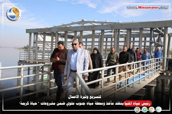 لتسريع وتيرة الاعمال رئيس مياه المنيا يتفقد مأخذ ومحطة مياه جنوب ملوي ضمن مشروعات «حياة كريمة»