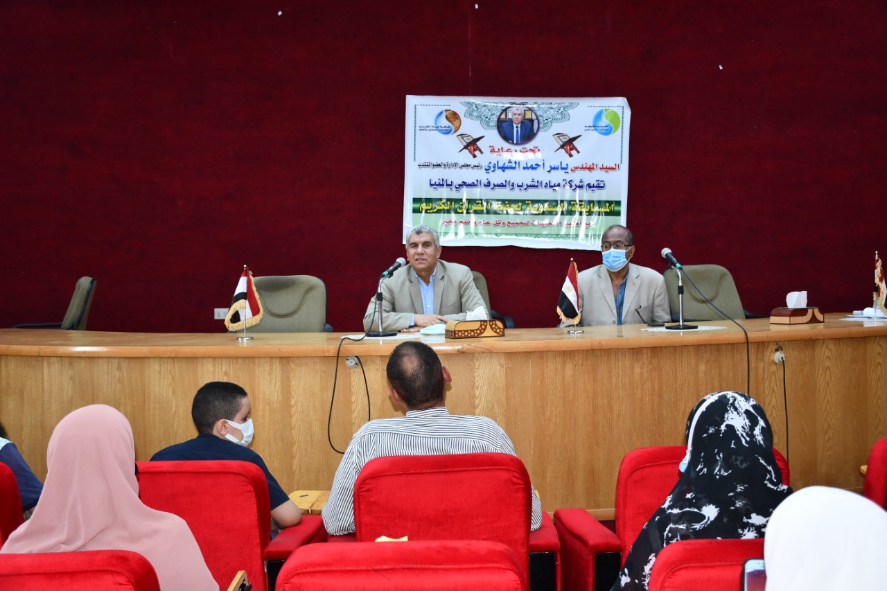 نظمت الإدارة العامة للعلاقات العامة بشركة مياه الشرب والصرف الصحي بالمنيا إحتفالية لتكريم حفظه القرآن الكريم من العاملين بالشركة وأسرهم . هذا وقد صرح المهندس ياسر أحمد الشهاوي رئيس مجلس الإدارة والعضو المنتدب لشركة مياه المنيا أن هذة الإحتفالية تأتي تحفيزاً للعاملين بالشركة وأبنائهم الذين إجتهدوا في حفظ كتاب الله حيث أن هذه المسابقة تعقد كل عام في شهر رمضان الكريم ويتم تشكيل لجنة لإختبار المتقدمين لهذه المسابقة وأضاف الشهاوي أن الشركة تعمل علي مشاركة العاملين بها في كافة الإحتفالات مثل يوم الشهيد والأم المثالية وأوائل الثانوية العامة وأن الشركة تعمل جاهدتاً علي مكافأة العاملين في كافة المجالات لبث روح الإنتماء لمصرنا الحبيبة.